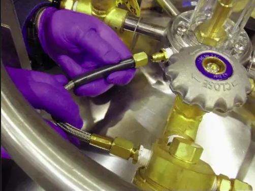 更換閥門(mén)時(shí),必須確保液氮罐內(nèi)部沒(méi)有任何殘留的液氮。首先關(guān)閉液氮罐的主要閥門(mén),并將液氮罐與外部的液氮供給系統(tǒng)斷開(kāi)。為了避免液氮?dú)埩簦脤⒐摅w內(nèi)的氣體完全排放,減少可能的危險(xiǎn)。